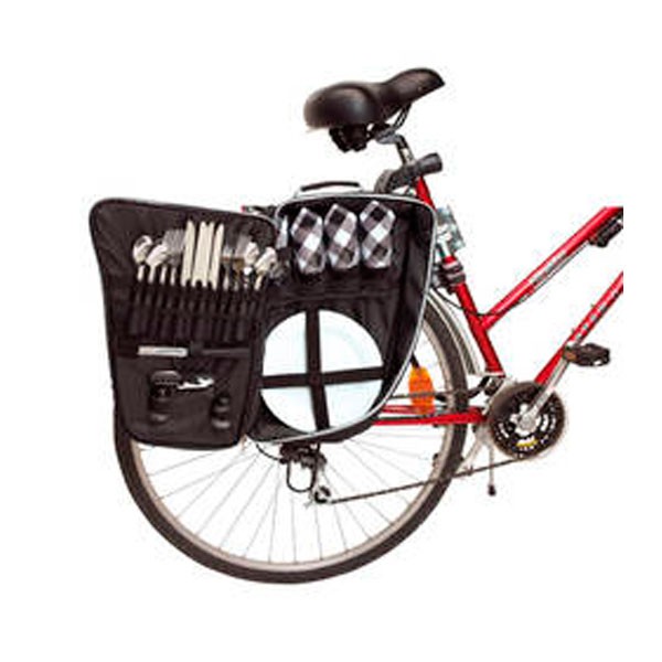 Bolsa de picnic para bicicleta, para 4 personas, bolsa nevera, espacio para tazas, platos, cubiertos, navaja de camarero, salero y pimentero, con cremallera.