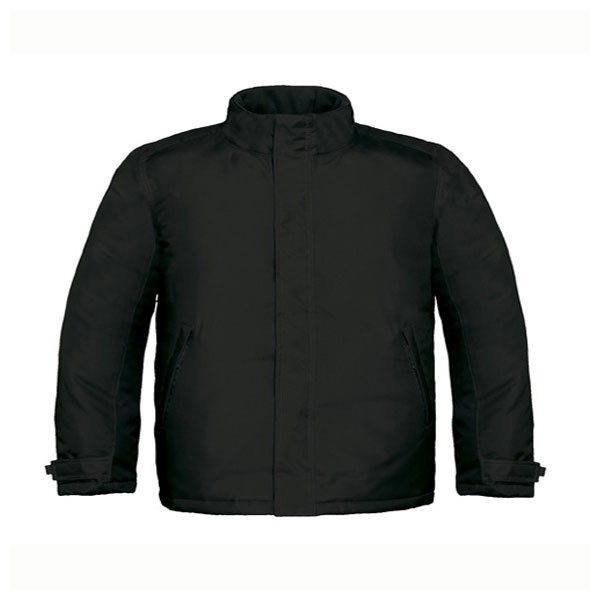 Exterior: 100% Poliéster Oxford, Interior; 100% Poliéster Tafeta con relleno acolchado, a prueba de viento y agua, capucha tejido polar, cremallera entera del mismo color de la prenda, cubrecremallera con banda de cierre, 2 bolsillos delanteros con cremallera, bolsillo interior con cremallera, puños ajustables con banda de cierre, protector de barbilla, cremallera invisible en la parte baja trasera para impresión o bordado.