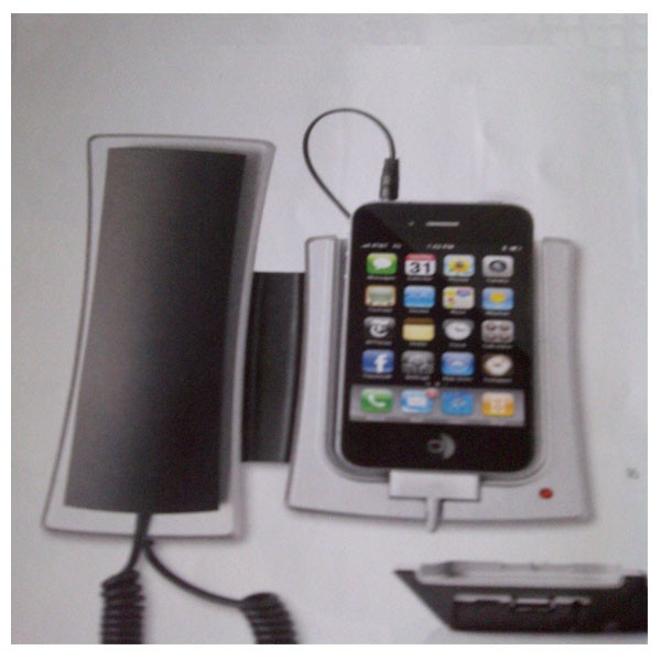 Soporte y auricular para Iphone con conector. Puerto USB y mini USB con cable extensible mini USB para cargar el iPhone®