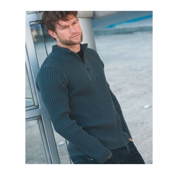 Jersey canalé con cremallera Paco 100% algodón, 700 gr/m2. Cuello con cremallera de color ahumado. Piezas en hombros y espalda de punto liso.